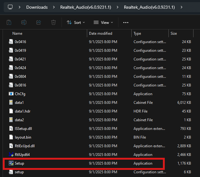 After following the extraction steps the folder will open up on the screen, and you may click on it to open the folder. You will be presented with several files depending on the driver type, but most drivers will have a Setup application that can be run.