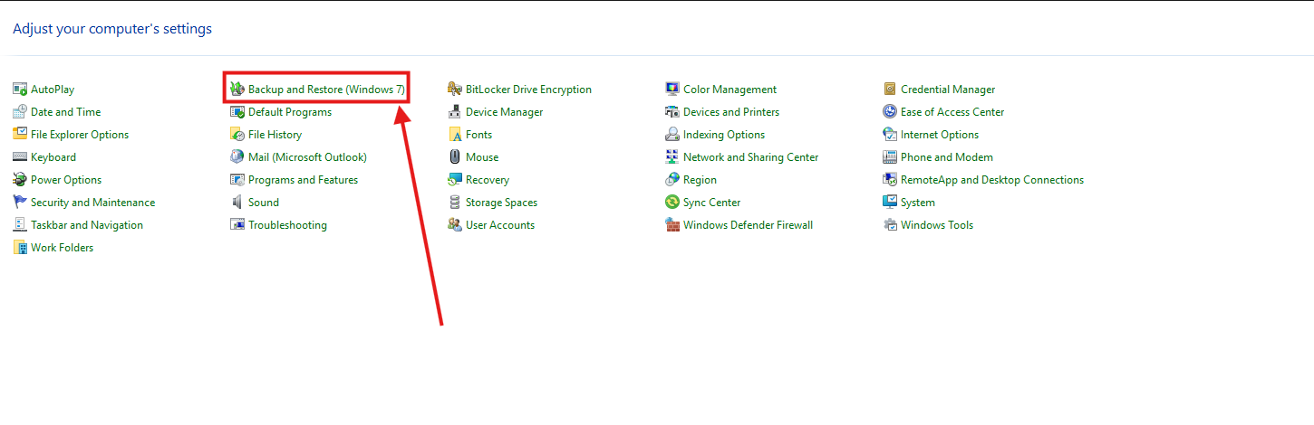 - Click Backup and Restore (Windows 7) This will still work on Windows 10 and 11: