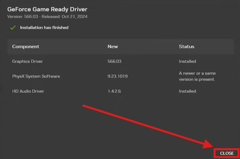 The app will begin to install the latest NVIDIA video card drivers at this point, and you can keep track of its progress with the progress bar. In most cases, this will take up to a few minutes.:
