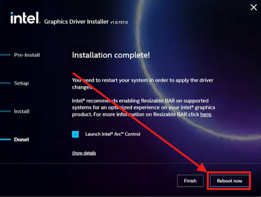 Manually updating Intel Arc drivers