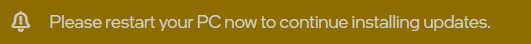 3. You will see a notice after clicking Install that says Please restart your PC now to continue installing updates Whenever you are ready, go ahead and restart your computer to finish the install: