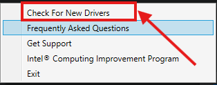 2. Click on it and choose Check For New Drivers from the menu that opens, this will open the Intel Driver & Support Assistant in a new internet browser window: